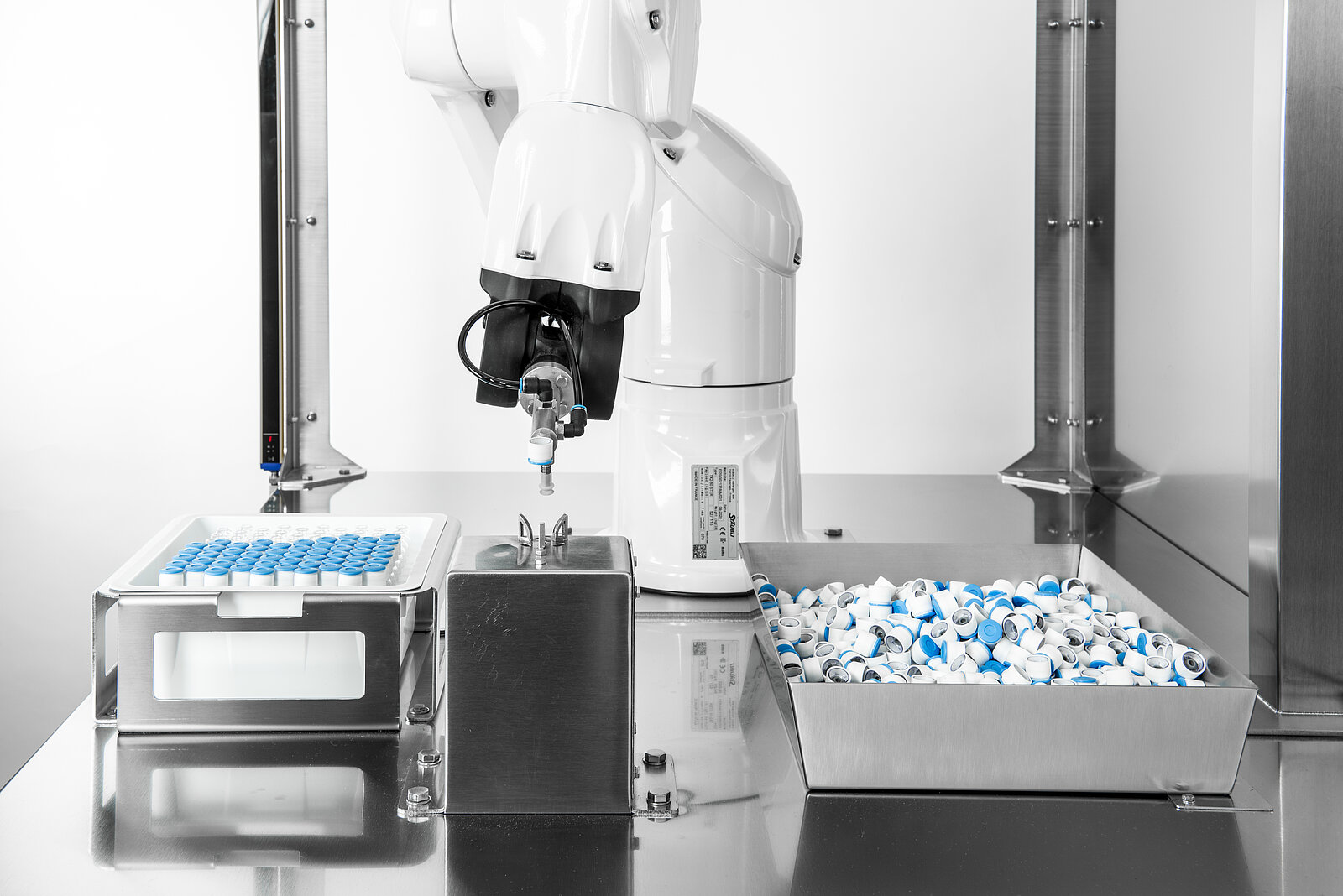 Für sichere Primärverpackungen für sensible Medikamente sorgt eine Technologie von Steriline. Das Unternehmen kombiniert Robotik mit einem 3D-Vision-System (3D CPS), um Partikelemissionen zu reduzieren und flexible, kontaminationsarme Produktionsprozesse zu ermöglichen. Das System erkennt Objekte im Arbeitsbereich und passt seine Bewegungen in Echtzeit an. Dadurch können herkömmliche Zuführsysteme wie Trichter oder Vibrationsschalen ersetzt werden. Entwickelt wurde das 3D CPS gemeinsam mit ISS – Innovative Security Solutions, einem Spin-off des Politecnico di Milano. Mit der Zusammenarbeit wollen beide Unternehmen pharmazeutisches Prozess-Know-how mit modernster Robotik und Bildverarbeitung verbinden.