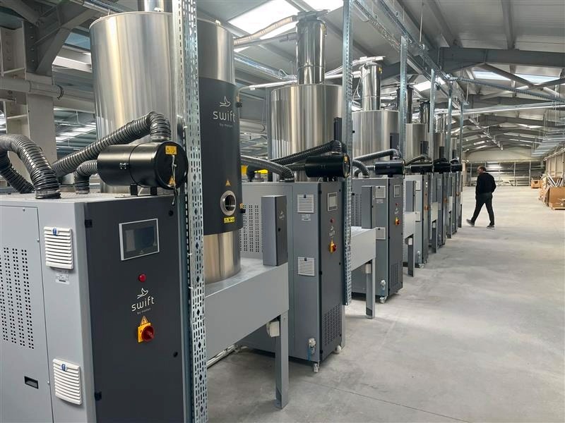 In unseren Produktionsanlage verwenden wir swift Trockner, Fördergeräte und volumetrische Dosiergeräte.