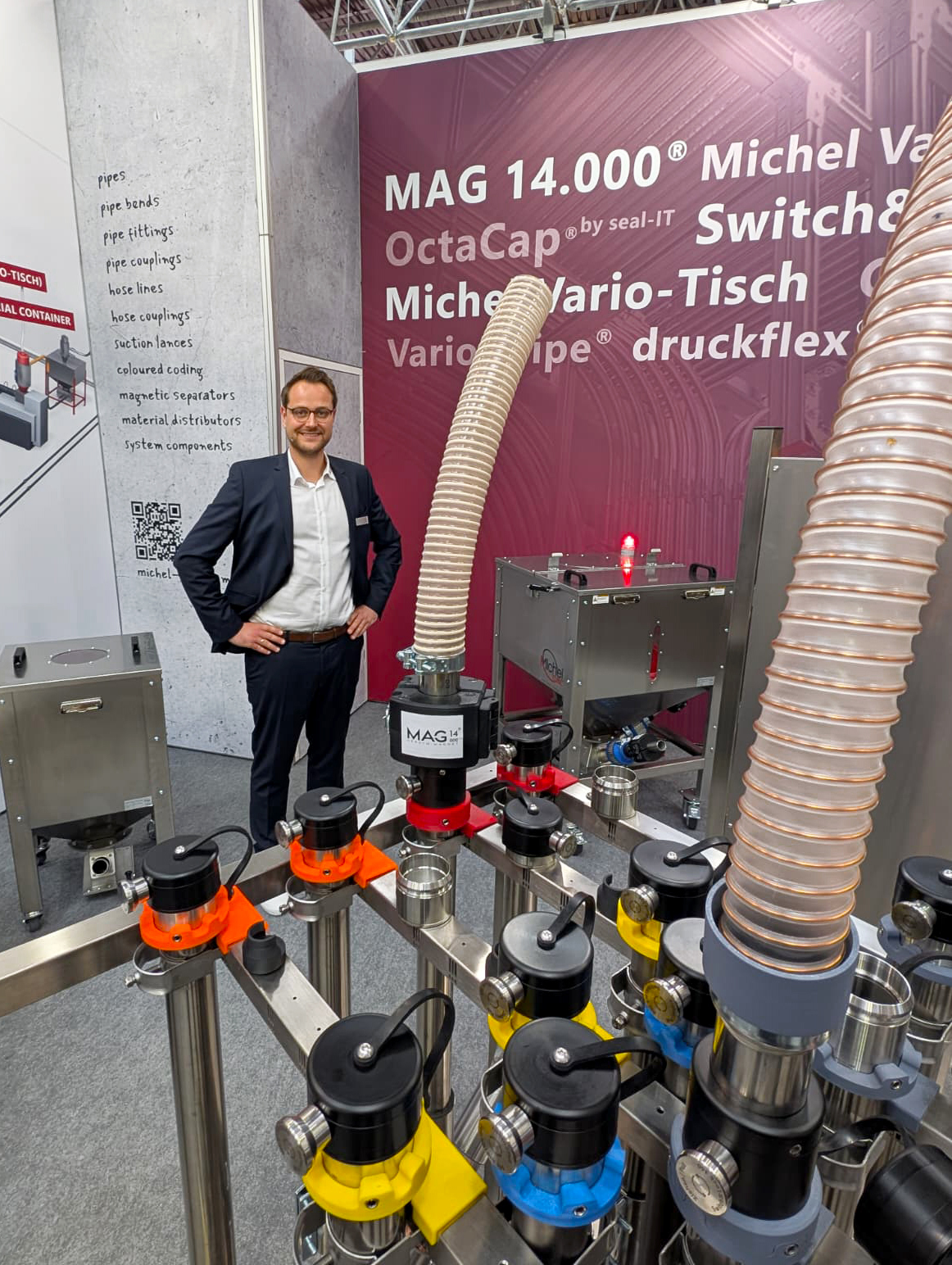 Besuchen Sie das Team von Michel Tube auf der K-Messe 2025 vom 08. – 15. Oktober in Düsseldorf und erleben Sie das neue ModuSilo System, die Michel Vario-Station und auch die komplett neu vorgestellte Schlauchkupplung Switch&Lock® 360, die beinahe widerstandlos – in sämtlicher Position – auf engstem Raum gekuppelt werden kann!