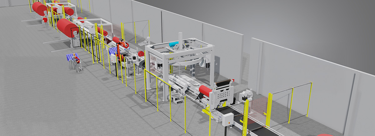 Durchgängiger Prozess von der Rollenentladung bis zur Palette