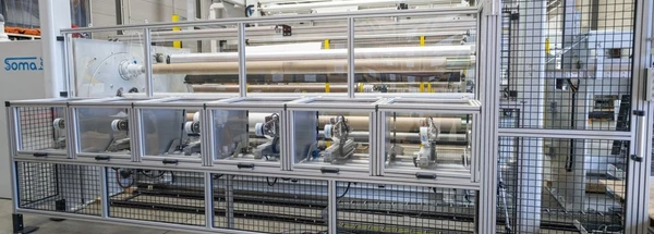 SOMATEC presents a new winding system that has been specially developed for the high demands of processing 12" TPO roofing material. The focus is on precise winding technology, short cycle times and reliable automation for maximum efficiency.