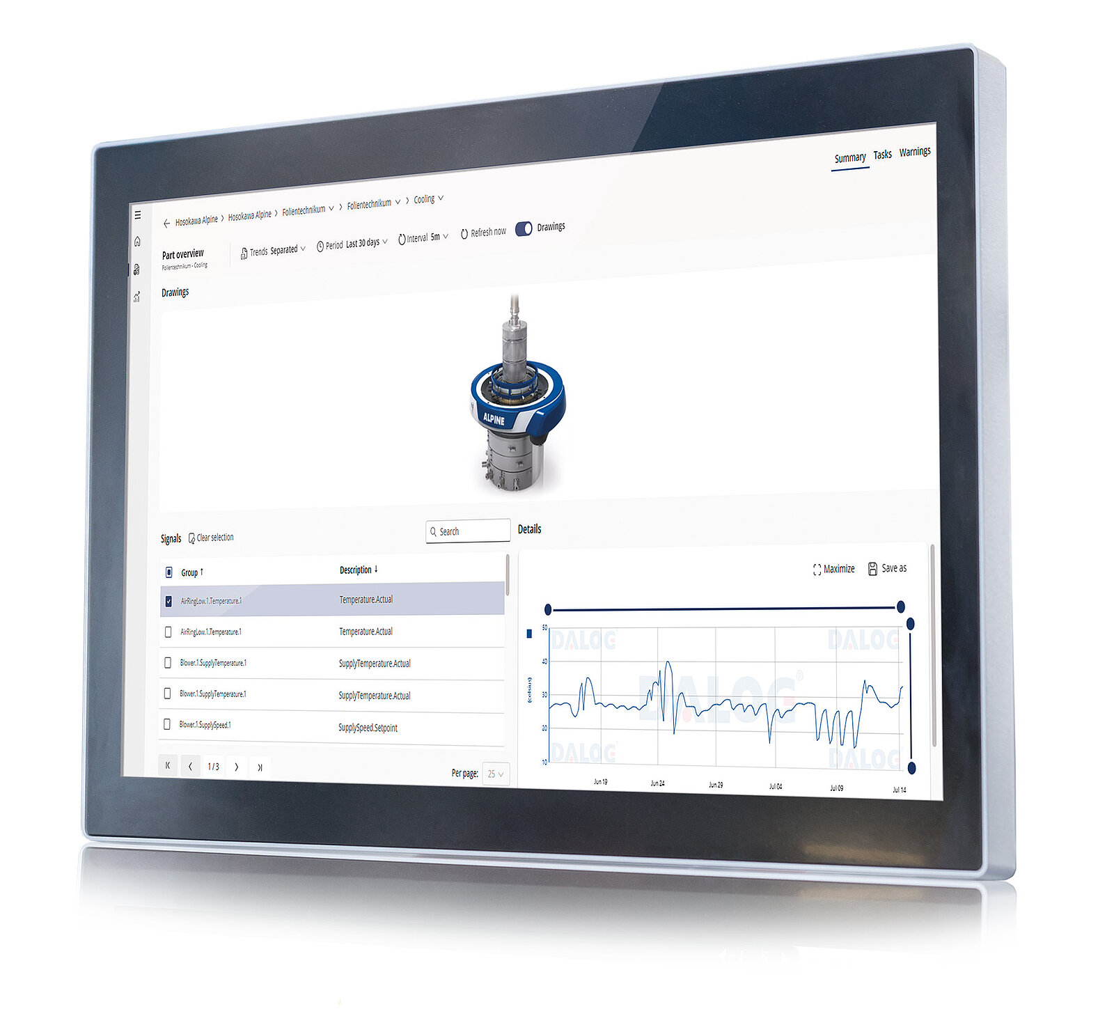 The modular software platform isa.io enables a comparative analysis of process data to optimise performance and increase efficiency across all machines. "This gives our customers an excellent overview of all Alpine blown film lines - including the option of carrying out targeted deep dives for detailed analyses. Push notifications and many other functions can also be customised on request," explains Christian Hoffmann.